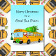 Papai Noel tem seu ônibus escolar cheio de suas renas favoritas, Sra. Claus e um casal de seus elfos para suas tarefas matinais de condução de ônibus. Este cartão de Natal faz um cartão maravilhoso para dar ao seu motorista de ônibus.