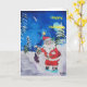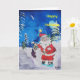 Papai Noel caminha pela floresta numa noite gelada cheia de neve.