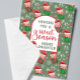 O cartão de Natal para a neta tem um padrão divertido com cupcakes de aquarela vestidos como Papai Noel com Ho Ho branco e flocos de neve no fundo.