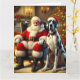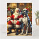 Uma adorável e engraçada cena de Natal com Papai Noel e um Grande Dane sentados em frente a uma árvore de Natal por um fogo confortável e quente. Ela inclui uma mensagem original de Natal de bobo que amantes de cachorros certamente amam.