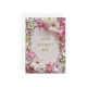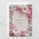 Um belo cartão do Dia das Mães com um buquê de flores rosa e brancas em um fundo branco. O texto na frente do cartão diz "FELIZ DIA DAS MÃES" em uma fonte rosa.