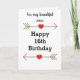 Um feliz cartão da sobrinha de 16 anos com setas brilhantes e corações vermelhos. Você poderá personalizar com o nome dela. Dentro neste cartão de aniversário de 16 anos, diz "Desejando amor, felicidade e risos hoje e todos os dias!" Você pode facilmente editar sua mensagem de aniversário. Na parte de trás deste cartão de aniversário de 16 anos lê Feliz Aniversário.