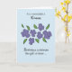Você está olhando para um cartão que seria excelente de dar a qualquer mulher que celebrasse um aniversário. O fundo azul claro e as flores violetas fazem uma bela frente. Se você conhece alguma mulher celebrando, este cartão é para ela.
