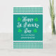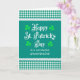 Um cartão de saudação bonito ao estilo country para Dia de São Patrício para seu neto, com painéis de gingham verdes e brancos no topo e no fundo, bordados com um lugar falso branco. A saudação do cobrir é, "Dia de São Patrício Feliz" em letras brancas de safra no fundo verde-escuro com quatro folhas de shamrock verde mais claras nos quatro cantos e, "a um GRANDSON maravilhoso" em letras brancas abaixo. A mensagem dentro é apenas uma sugestão e você pode alterá-la facilmente ou apagá-la se desejar.