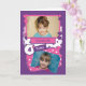Personalize este cartão com a idade da menina, duas fotos e um nome Mude o texto no dentro à esquerda 'feliz aniversário', se preferir, e adicione o dentro de mensagens projetado em rosa, roxo e branco, com bolinhas e corações de amor.