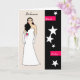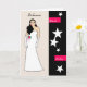 Este cartão especial de felicitação tem um desenho de uma jovem com um vestido branco longo, luvas brancas, cabelo preto longo e uma flor rosa no vestido pela cintura. Há uma grande borda preta na frente com estrelas e bares cor-de-rosa. As palavras Debutante e You are a Star estão na frente do cartão. O dentro é, em parte, um cartão de crédito. Obrigados a Todos Silhouets para o esboço da jovem.