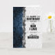 Uma paisagem azul de um lado com uma borda de botões prateados e uma paisagem macia e desbotada de coordenação prateada no lado direito dão a este cartão de aniversário para o seu marido uma sensação masculina, e ele vai amar a mensagem sentimental e sincera.