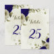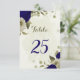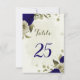 Belo cartão romântico de números de mesa com flores azuis reais e beige e algumas folhas. PARA MAIS PRODUTOS CORRESPONDENTES, clique na coleção acima ou entre em contato comigo