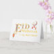 Um cartão na moda para o seu amigo, com contorno decorativo de letras em efeito ouro e cheio de padrões islâmicos de cor brilhante. A saudação do cobrir é: "Eid Mubarak. para o meu querido amigo!" Há uma lanterna de cor brilhante no canto inferior esquerdo, pendurada por baixo da letra 'E' e uma lua e estrela com padrões no canto superior direito, com mais duas lanternas e uma Estrela Islâmica suspensa da lua. O fundo branco no cobrir frontal é ligeiramente texturizado e a mensagem dentro é apenas uma sugestão que você pode facilmente alterar ou excluir se desejar.