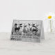 Foto preta e branca com chapéus de festa e pronto para fazer esta festa MOOving! Um cartão de cumprimentos de aniversário engraçado para um amigo. Arte, imagem e direitos de autor versos © Shoaff Ballanger Studios, 2023.