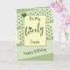 Feliz cartão de cumprimentos de aniversário para seu adorável primo. Projetado em verde e amarelo com bolinhas.