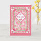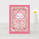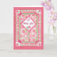 Um cartão de parabéns bonito para uma menina com um design colcha-colcha em branco rosa e verde, pintado por Judy Adamson. A saudação dentro, que você pode personalizar, é 'Parabéns!'.