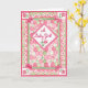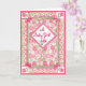 Um cartão de parabéns bonito para uma menina com um design colcha-colcha em branco rosa e verde, pintado por Judy Adamson. A saudação dentro, que você pode personalizar, é 'Parabéns!'.