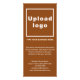 Cartão em rack que você pode personalizar e usar como material de marketing para anunciar sua empresa ou promover seu nome de marca para os clientes. Cartão de rack com o nome da sua empresa para criar reconhecimento de nome de marca. A cor é marrom e as cores da fonte são marrom-claro e branco. Para personalizar este cartão de rack, carregue o logótipo da sua empresa, escreva o nome da sua empresa ou empresa, uma descrição curta e atraente da sua empresa, endereço, número de telefone, correio eletrônico e Web site ou página de suporte social. Verifique a aparência após carregar o logotipo e digitar textos. Se a aparência lhe agrada, você pode colocar seu pedido agora. Se você precisar redimensionar e mover o logotipo e as mensagens para o ajustado nesta placa de rack, mude na ferramenta design. Você também pode fazer outras alterações de acordo com sua preferência na ferramenta design, como alterar a cor da placa de rack, a cor da fonte e o estilo da fonte.