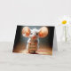 Um rato fofo fica em um chão de madeira segurando um cartaz com "Parabéns" escrito nele