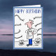 Um cartão de aniversário com um desenho de um eletricista olhando para muitos cabos e fios. Placa ideal para qualquer Contratante elétrico ou eletricista