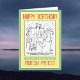 Um cartão de aniversário com um desenho de Noah em sua arca dizendo aos animais que a previsão do tempo é para mais chuva. Cartão ideal para qualquer vigário, padre de Paróquia ou trabalhador da Igreja.