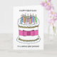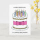 Um grande bolo de aniversário de cartoon coberto por velas luminosas de cor múltipla e acompanhado das palavras "Parabéns a um Nadador Selvagem especial".