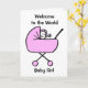 Um desenho bonito de uma menina acenando de uma poça rosa. O cartão diz "Bem-vindo à Garota do Mundo e dentro" diz Parabéns sobre o nascimento do seu lindo bebê. Personalize facilmente este cartão editando o texto do modelo na frente e no dentro. Obrigados para ver meus designs!