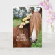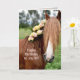 Cartão de aniversário com cavalo e flores e mensagem de aniversário feliz personalizada. Um cavalo marrom, com tranças e cabelos compridos sobre a face, está na frente deste cartão de saudação dobrado. O dentro de fundo da carta é um campo de cosmos e flores silvestres. Duas ferraduras decoram a parte traseira da placa. Este cartão também pode ser adquirido como um download instantâneo para compartilhar digitalmente.