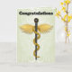 Ele apresenta um funcionarios preto com acentos dourados na área superior da bola. As asas estão espalhadas e o cobra é ouro também. Fundo verde com um padrão leve. O texto diz parabéns e seria perfeito tanto para a graduação quanto para a promoção do emprego.