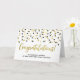 Parabéns a um casal maravilhoso no cartão de parabéns do dia do casamento com padrão de confetes preto e dourado, personalizável com os nomes do casal feliz.