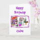 Feliz Aniversário - Chloe - Cartão divertido com o desenho animado "As raparigas a comprar", o cartão branco, um texto colorido e um desenho animado.