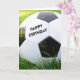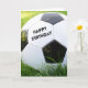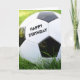 Uma clássica bola de futebol preto e branco na grama verde alta do verão com as palavras Feliz Aniversário. Totalmente personalizável para você personalizar como quiser! Perfeito para o fã desportivo!