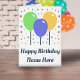 Cartão de saudação de aniversário feliz personalizável com balões coloridos: você pode personalizar o cartão frontal e dentro com o nome e o texto desejados ou deixar o vazio. Esta design pode ser usada para celebrar um aniversário, especialmente o de uma criança!