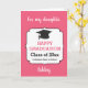 Este é um cartão personalizado de graduação de filha. Você pode personalizar facilmente esta classe de placa de graduação 20xx filha com o nome dela e a escola do estudante. Isso faria um formando maravilhoso guardar para ela.