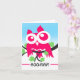Cartão Parabéns Coruja Rosa Cuta-Rosa em Ramificação