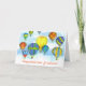 "Parabéns," cartão graduado decorado com os balões de ar quente coloridos que flutuam altamente no céu em um dia nebuloso calmo ilustrado com aguarela. Você pode editar a mensagem para caber suas necessidades.