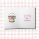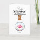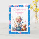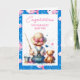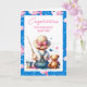 Parabéns sobre a sua nova bebê pescando o novo cartão de bebê. Uma ilustração adorável e doce da aquarela de uma menina em suspensórios bonitinhos pescando com um ursinho de pelúcia. As cores desses convites incluem azul e rosa. Dentro é um peixe rosa num balde de água. Nas costas há um peixe rosa num peixe.