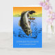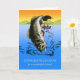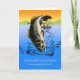 Parabéns na aposentadoria de um amigo, cartão de saudação em papel. Cena de pesca com barco retrorreflector de madeira, dois pescadores, grandes cacos de boca, pôr do sol e grandes chuvas na água do lago. Colinas verdes e preguiçosas à distância. Arte, imagem e direitos de autor © Shoaff Ballanger Studios.