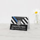 Este design apresenta uma bandeira da polícia com listras pretas e brancas, e uma fina faixa azul de linha também. Uma forma excelente de dizer parabéns ao novo aposentado para sua aposentadoria da polícia. Personalize com o nome do polícia aposentado, xerife, capitão ou chefe. Celebre este marco em estilo!