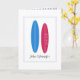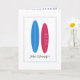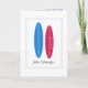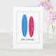 Cartão personalizado de parabéns de casal de surfe para casamento ou aniversário. A placa mostra uma prancha azul e rosa. Esta design moderna tem espaço para os nomes do marido e da esposa, bem como para a data do casamento. Dentro a mensagem lê, "parabéns" e isso pode ser personalizado conforme desejado. Perfeito para casais que amam o mar e conselhos longos.