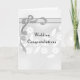 Uma placa de cinza branca e clara bonito com arco e flores. Na frente do cartão figuram as palavras "Parabéns de casamento", para que o cartão possa ser utilizado para qualquer casal de casamento, se se alterar a redação do dentro do cartão. As palavras na dentro do cartão são para seu primo e seu novo marido.