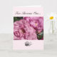 Uma bela captura de dois rosas poeirentos de cor rosa aninhados juntos neste cartão de casamento. Personalizar conforme desejado.