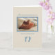 Aqui está um cartão muito especial para um chá de bebê muito especial! Esta bela e tocante fotografia dos pés do bebê com as pegadas recém-nascidas em azul será o cartão perfeito para a futura mãe para o seu chá de fraldas! Colocados em tons neutros, os detalhes azuis destacam-se para o bebê a caminho.