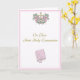 Primeiros parabéns da Comunidade, cor-de-rosa, com cruz, flores e bíblia.