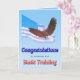 Envie parabéns para o treinamento básico. Uma bela paisagem de montanha com uma águia careca voando no céu. Adicione um nome para personalizar este cartão.