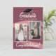 Cartão com fotos Red Watercolor Formando 2. Tendy cor-de-água rosa em um fundo vermelho escuro. Personalize com 2 fotos e o nome do formando na frente e a mensagem na parte traseira da placa ou apague-a.