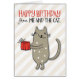 Saudações de aniversário engraçadas de "Eu e o Gato" sugerem vir para "abrir crack" uma lata de Banquete Rico.
