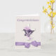 Cartão batizante elegante, cor-de-rosa e roxo, com crucifixo e arco de ornamentado. Este cartão também pode ser personalizado para parabéns de comunhão ou de confirmação.