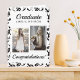 Placa de colagem de fotos do Formando 2 dos Parabéns de padrões Rococo. Trendy e padrão rococó preto na moda. Personalize com 2 fotos e o nome do formando na frente e a mensagem dentro a placa ou apague-a.