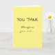 Celebre uma grande conquista profissional do seu colega, amigo, ou amado com este cartão! A mensagem é uma peça sobre a famosa frase do filósofo René Descartes, "Je pense, donc je suis" ("cogito ergo sum"). Na frente do cartão lê-se: "VOCÊ PENSA", seguido de "logo você está...". Ao abrir o cartão, prossegue a redação: "TENURED! Parabéns!" A frente do cartão é amarela e a mensagem aparece em letras negras; personalize com outras cores, se desejar. Perfeito para qualquer um ao obter um mandato acadêmico!