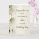 Parabéns no seu cartão do dia de casamento para irmã com lindos padrões de flores brancas e vítreas sentimentais.