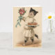 Vintage/parabéns e cumprimentos cartão do Victorian. O gato adorável vestiu-se em um uniforme do padeiro com um buquê dos rosas e de um bolo! Aperfeiçoe o cartão para comemorar toda a ocasião! Aperfeiçoe para amantes do gato!