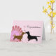 Cartão lunático dos parabéns do casamento/noivado feito em um rosa pálido, com uma flor de vista stenciled colorida grande rosa como o fundo. Um marrom e um dachshund preto mostram em silhueta a cara, com os corações cor-de-rosa que flutuam acima. Personalize todo o texto, na parte dianteira e no interior para serir suas necessidades. O cartão perfeito para alguns amantes do doxie.