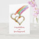 Felicite um gay especial ou casal lésbico por seu noivado com este cartão colorido e sincero mostrando um belo arco-íris de "pintura" das seis cores do orgulho lgbt terminando em dois corações interligados.